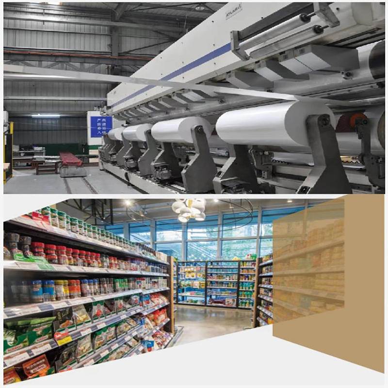 라벨에 금속성 광택을 더하여 포장의 시각적 질감과 고급스러운 느낌을 향상시킵니다.